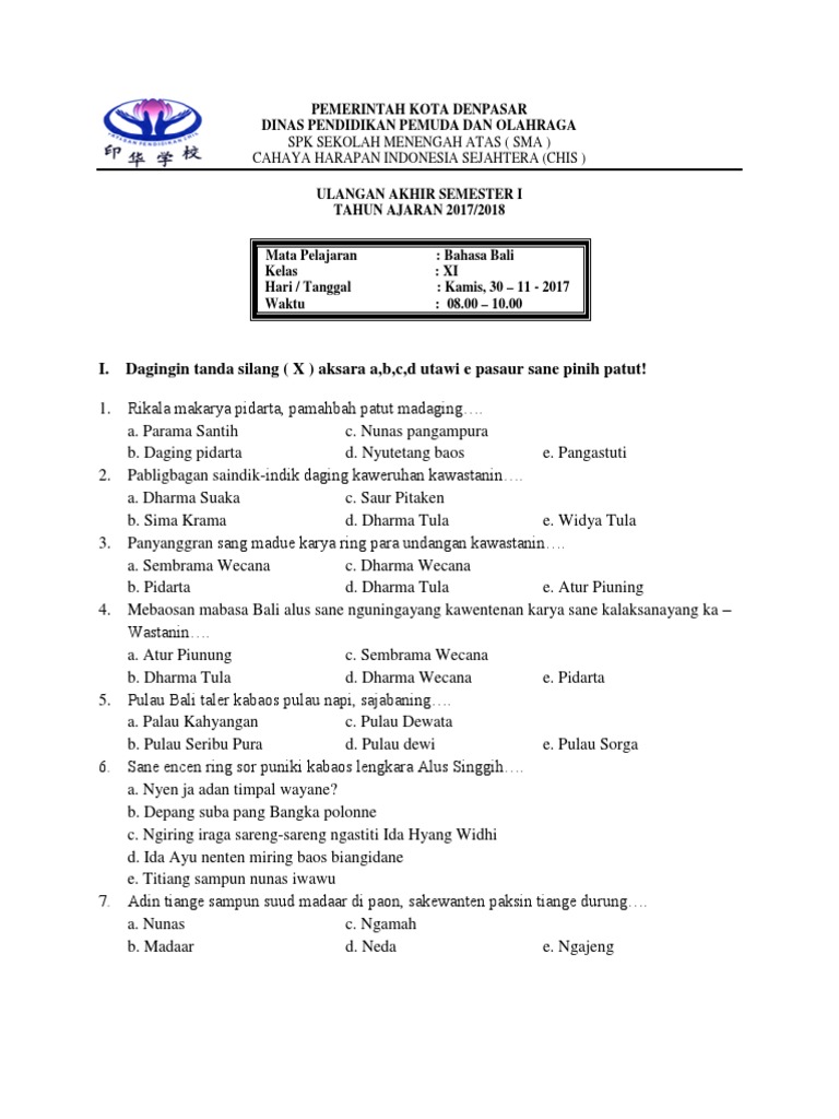 Soal bahasa bali kelas 11 semester 1.